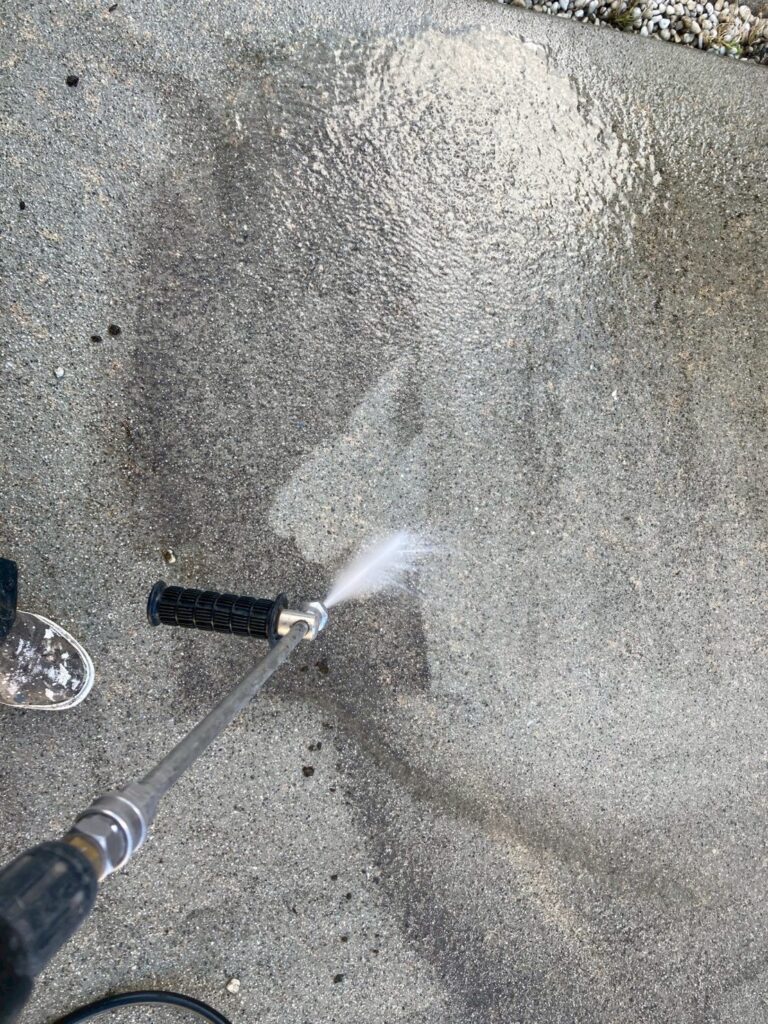 ↓は駐車場床部分の高圧洗浄の様子です。