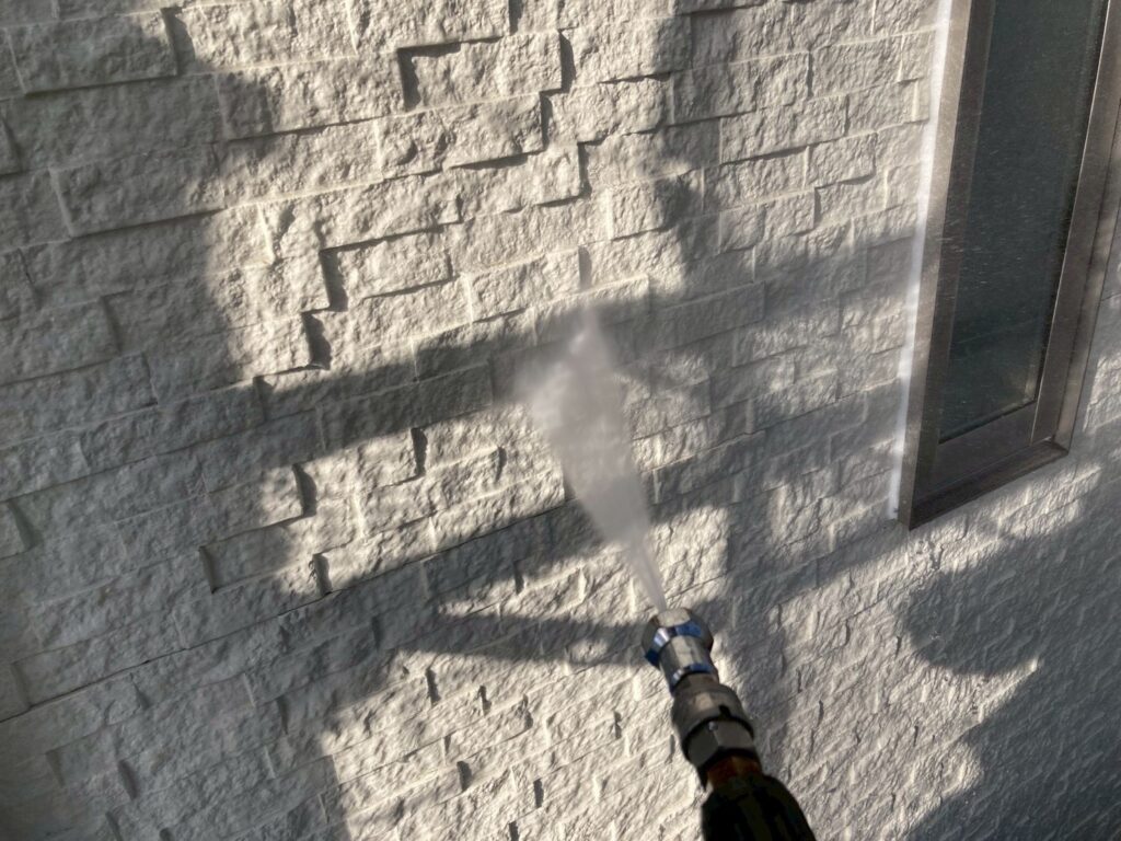 まずは施工中をご覧ください↓ 外壁高圧洗浄の様子