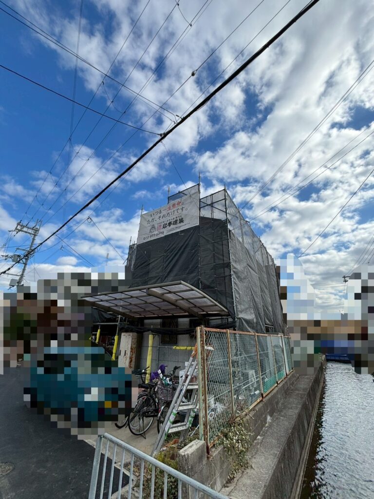 昨日から柏原市で外壁屋根塗装工事 シーリング工事が着工しました。