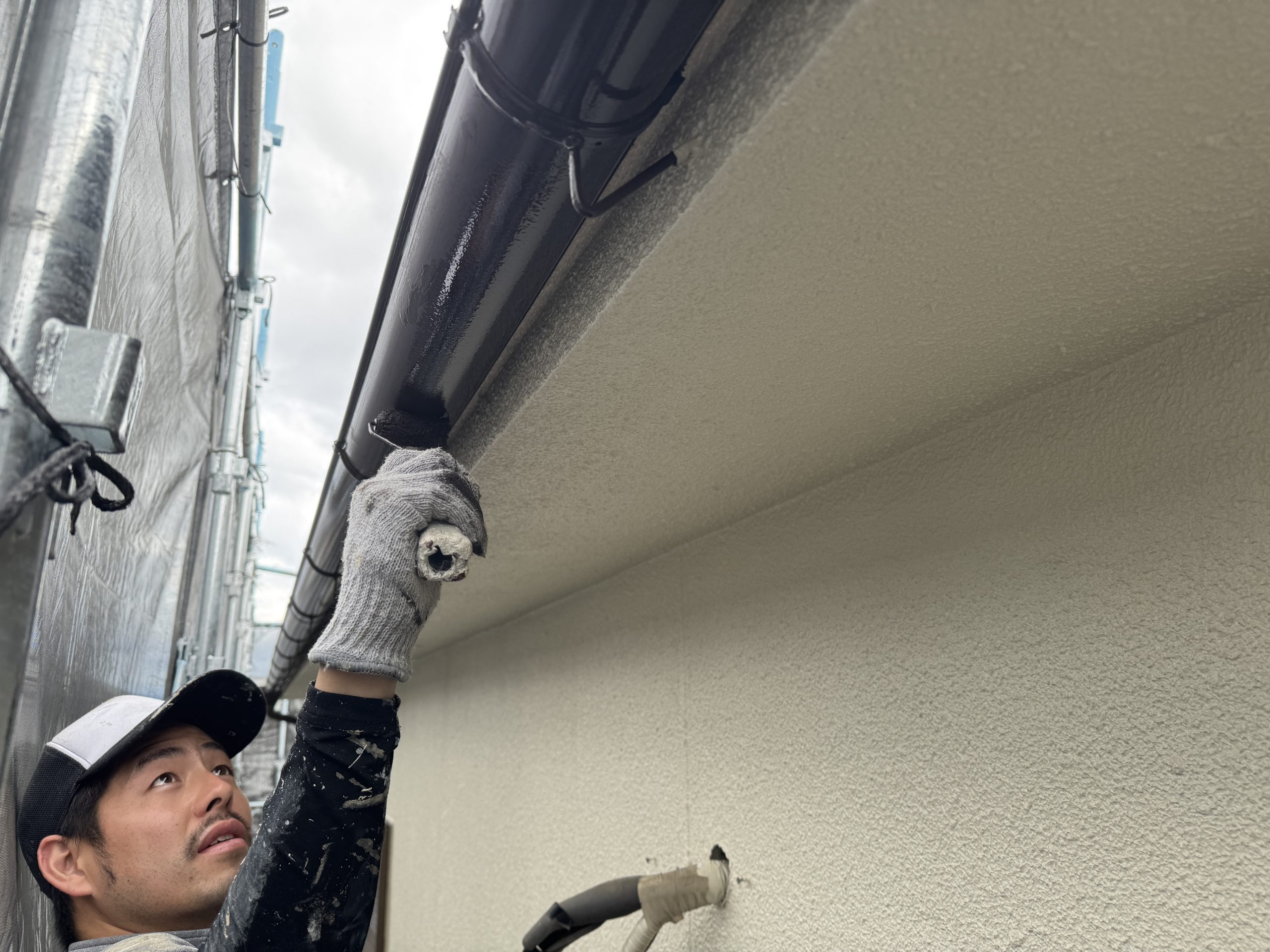 最近雨が多いですが、今週は何とか天気がもつことを祈ります。来週の足場解体までに確実に丁寧に仕上げていきます!